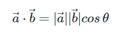 두 벡터의 내적은 두 벡터의 크기의 곱과 그 사이의 각도의 코사인 값으로 나타낸다.
